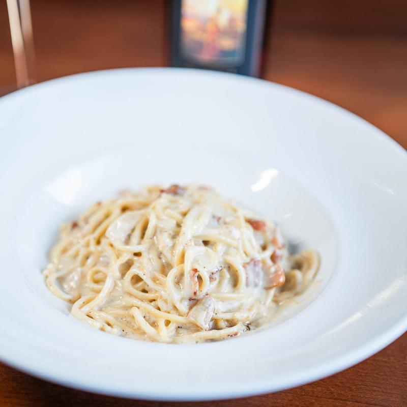 Spaghetti tossed in a creamy pancetta, onion, and parmesan cheese sauce.
